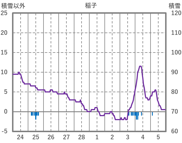 | 日 | 時 | 気温 | 降水 | 風向/風速 | 日照 | 積雪 | 降雪 |