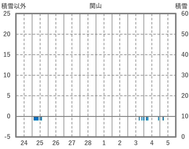 | 日 | 時 | 気温 | 降水 | 風向/風速 | 日照 | 積雪 | 降雪 |