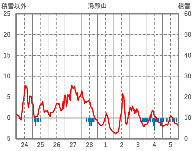 | 日 | 時 | 気温 | 降水 | 風向/風速 | 日照 | 積雪 | 降雪 |