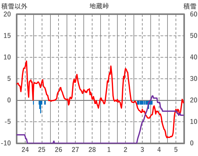 | 日 | 時 | 気温 | 降水 | 風向/風速 | 日照 | 積雪 | 降雪 |
