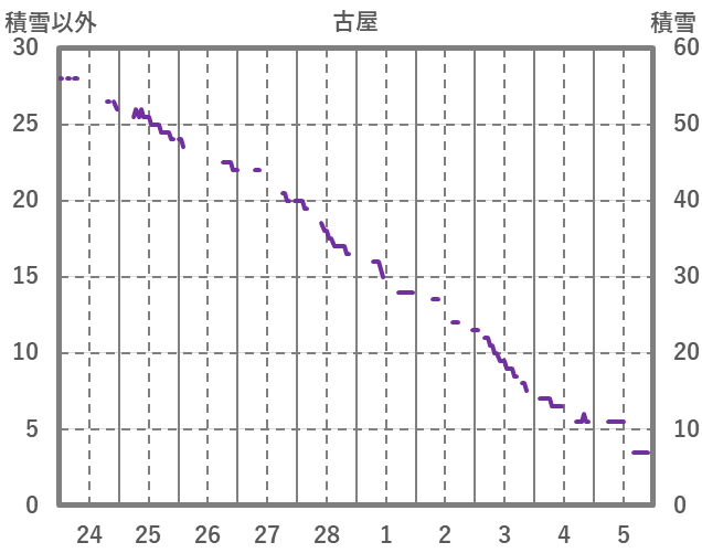 | 日 | 時 | 気温 | 降水 | 風向/風速 | 日照 | 積雪 | 降雪 |