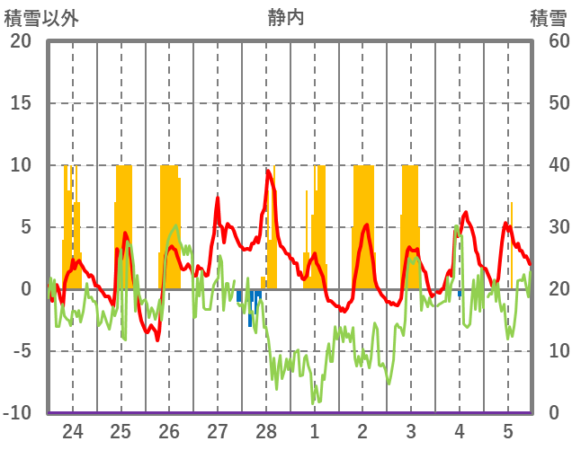 | 日 | 時 | 気温 | 降水 | 風向/風速 | 日照 | 積雪 | 降雪 |