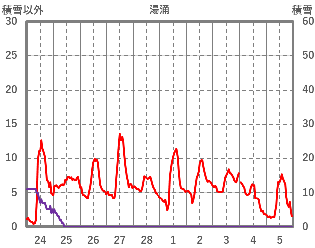 | 日 | 時 | 気温 | 降水 | 風向/風速 | 日照 | 積雪 | 降雪 |