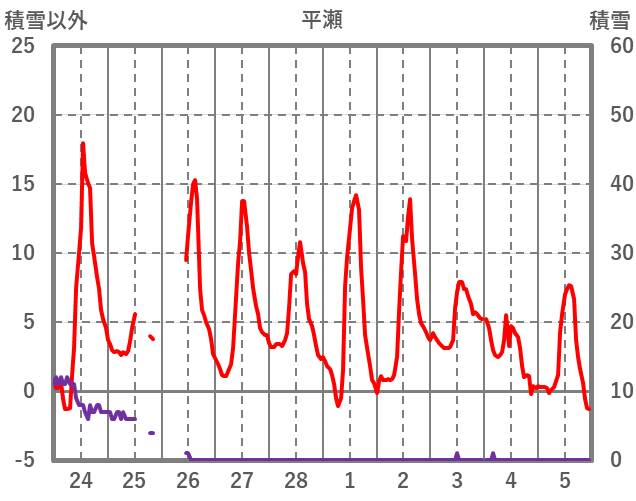 | 日 | 時 | 気温 | 降水 | 風向/風速 | 日照 | 積雪 | 降雪 |
