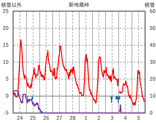 | 日 | 時 | 気温 | 降水 | 風向/風速 | 日照 | 積雪 | 降雪 |