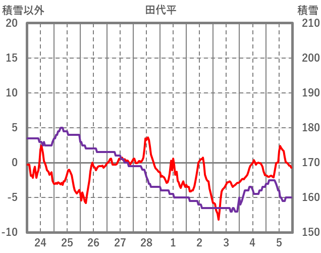 | 日 | 時 | 気温 | 降水 | 風向/風速 | 日照 | 積雪 | 降雪 |