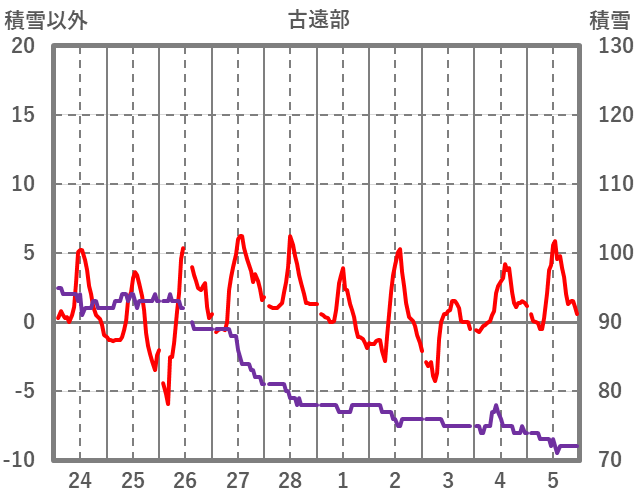 | 日 | 時 | 気温 | 降水 | 風向/風速 | 日照 | 積雪 | 降雪 |