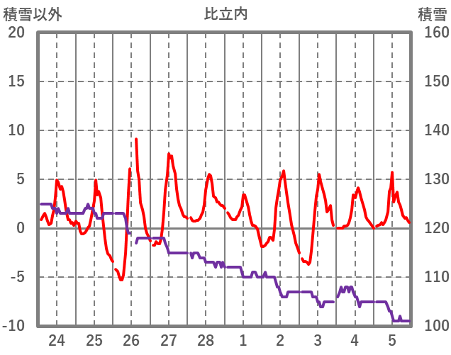 | 日 | 時 | 気温 | 降水 | 風向/風速 | 日照 | 積雪 | 降雪 |