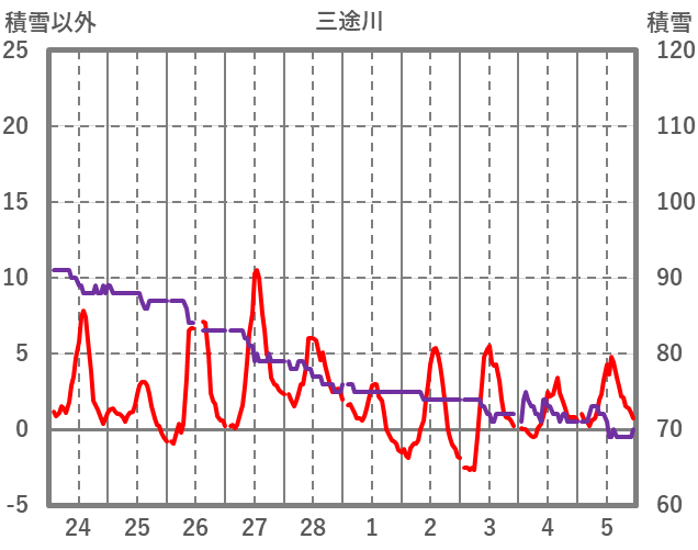 | 日 | 時 | 気温 | 降水 | 風向/風速 | 日照 | 積雪 | 降雪 |