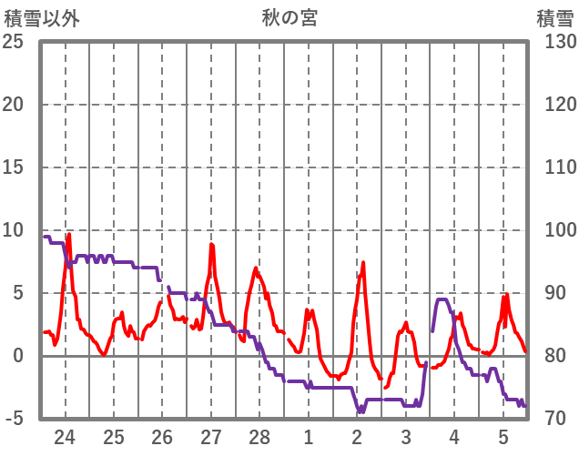 | 日 | 時 | 気温 | 降水 | 風向/風速 | 日照 | 積雪 | 降雪 |