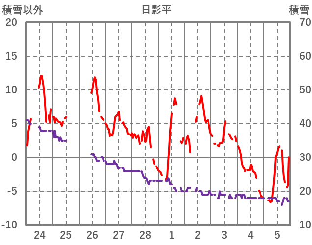 | 日 | 時 | 気温 | 降水 | 風向/風速 | 日照 | 積雪 | 降雪 |