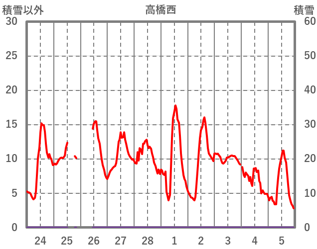 | 日 | 時 | 気温 | 降水 | 風向/風速 | 日照 | 積雪 | 降雪 |