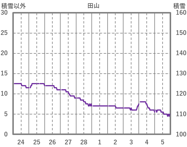 | 日 | 時 | 気温 | 降水 | 風向/風速 | 日照 | 積雪 | 降雪 |