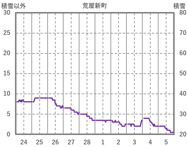 | 日 | 時 | 気温 | 降水 | 風向/風速 | 日照 | 積雪 | 降雪 |