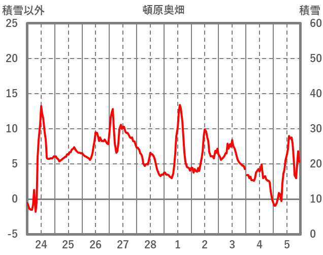 | 日 | 時 | 気温 | 降水 | 風向/風速 | 日照 | 積雪 | 降雪 |