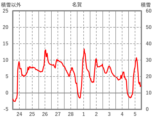 | 日 | 時 | 気温 | 降水 | 風向/風速 | 日照 | 積雪 | 降雪 |