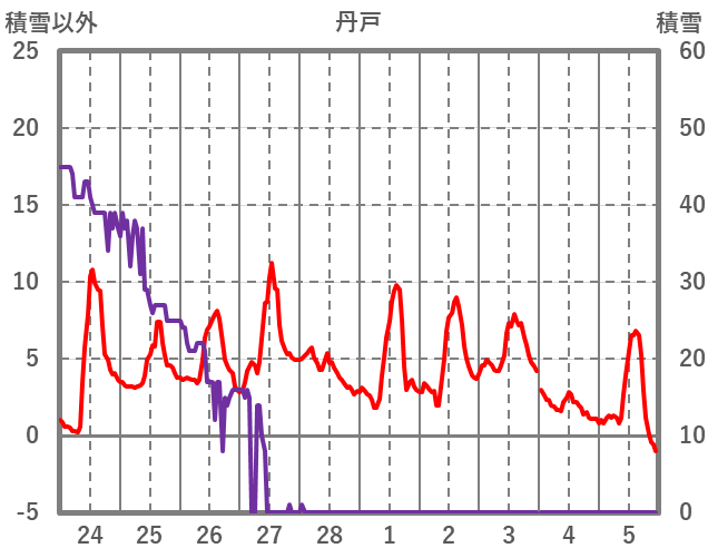| 日 | 時 | 気温 | 降水 | 風向/風速 | 日照 | 積雪 | 降雪 |