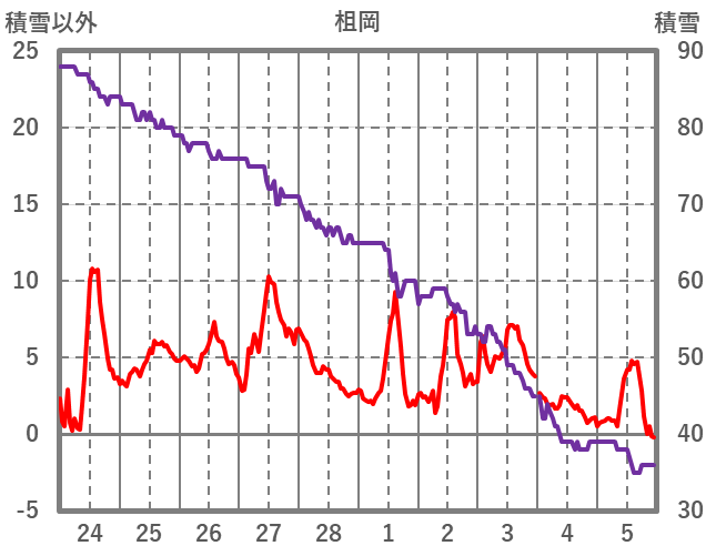 | 日 | 時 | 気温 | 降水 | 風向/風速 | 日照 | 積雪 | 降雪 |