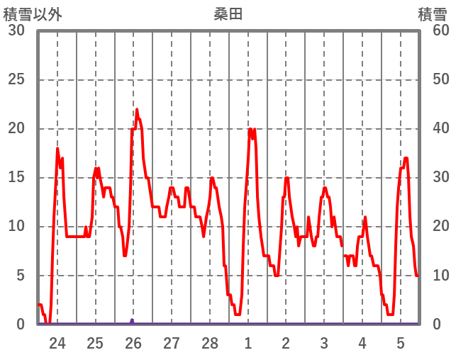 | 日 | 時 | 気温 | 降水 | 風向/風速 | 日照 | 積雪 | 降雪 |