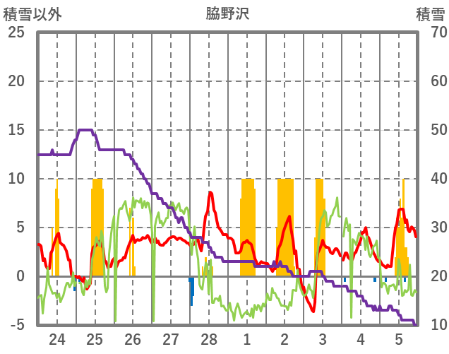 | 日 | 時 | 気温 | 降水 | 風向/風速 | 日照 | 積雪 | 降雪 |