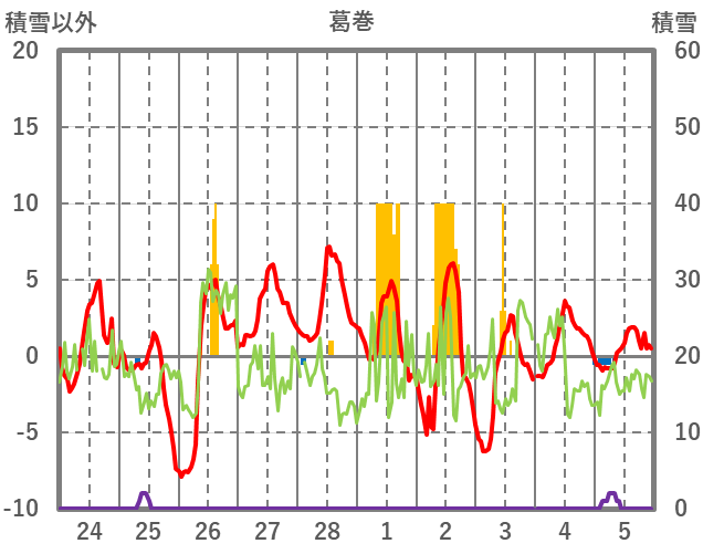 | 日 | 時 | 気温 | 降水 | 風向/風速 | 日照 | 積雪 | 降雪 |