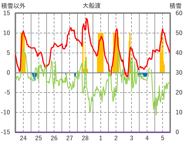 | 日 | 時 | 気温 | 降水 | 風向/風速 | 日照 | 積雪 | 降雪 |