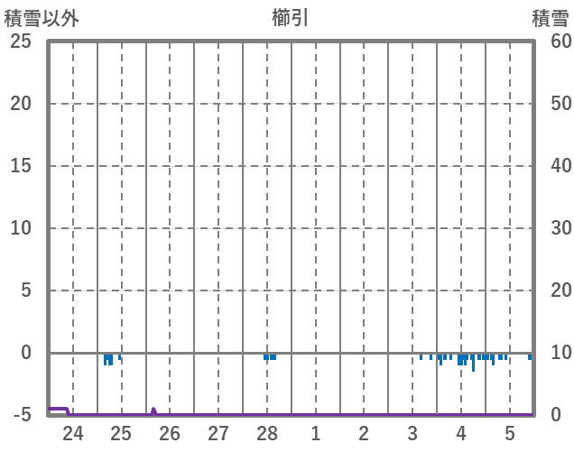 | 日 | 時 | 気温 | 降水 | 風向/風速 | 日照 | 積雪 | 降雪 |