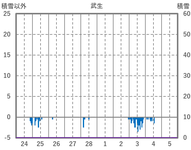 | 日 | 時 | 気温 | 降水 | 風向/風速 | 日照 | 積雪 | 降雪 |