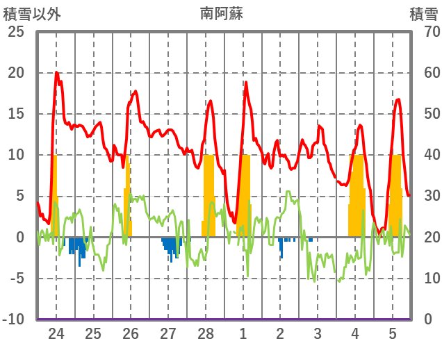 | 日 | 時 | 気温 | 降水 | 風向/風速 | 日照 | 積雪 | 降雪 |