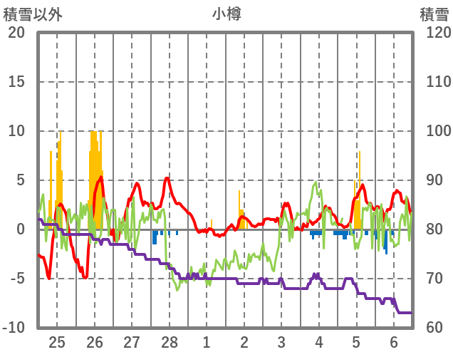 | 日 | 時 | 気温 | 降水 | 風向/風速 | 日照 | 積雪 | 降雪 |