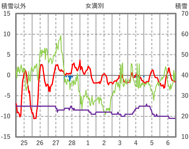| 日 | 時 | 気温 | 降水 | 風向/風速 | 日照 | 積雪 | 降雪 |