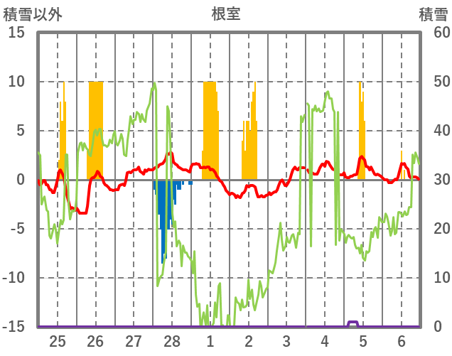 | 日 | 時 | 気温 | 降水 | 風向/風速 | 日照 | 積雪 | 降雪 |