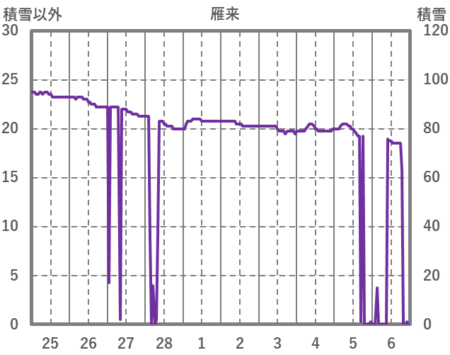 | 日 | 時 | 気温 | 降水 | 風向/風速 | 日照 | 積雪 | 降雪 |