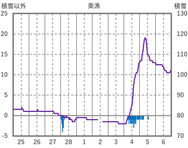 | 日 | 時 | 気温 | 降水 | 風向/風速 | 日照 | 積雪 | 降雪 |