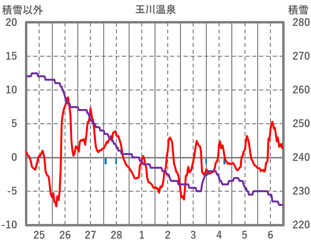 | 日 | 時 | 気温 | 降水 | 風向/風速 | 日照 | 積雪 | 降雪 |