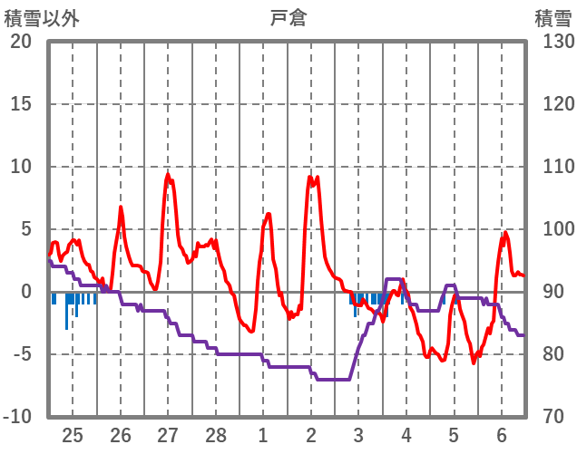 | 日 | 時 | 気温 | 降水 | 風向/風速 | 日照 | 積雪 | 降雪 |