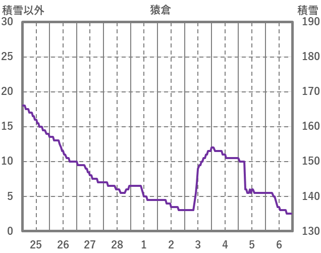 | 日 | 時 | 気温 | 降水 | 風向/風速 | 日照 | 積雪 | 降雪 |