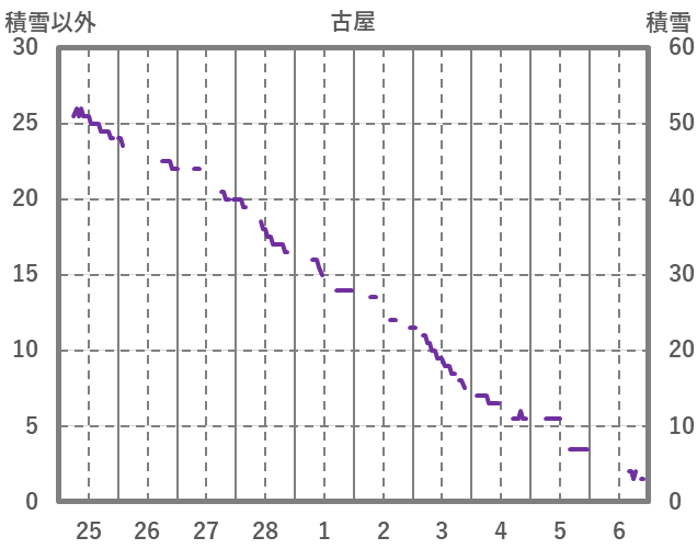 | 日 | 時 | 気温 | 降水 | 風向/風速 | 日照 | 積雪 | 降雪 |