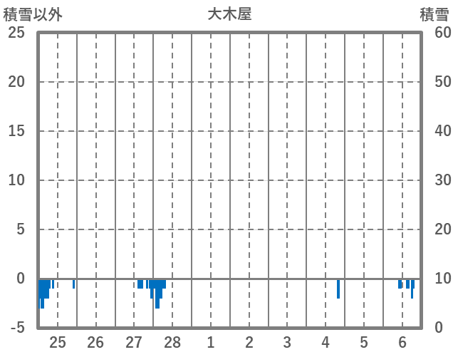 | 日 | 時 | 気温 | 降水 | 風向/風速 | 日照 | 積雪 | 降雪 |