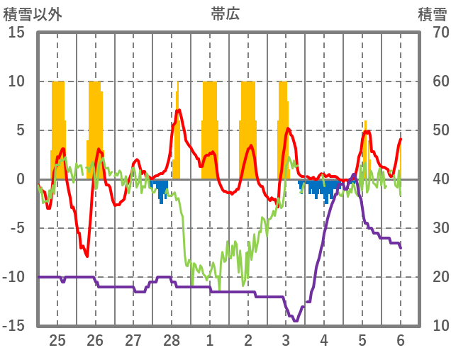 | 日 | 時 | 気温 | 降水 | 風向/風速 | 日照 | 積雪 | 降雪 |