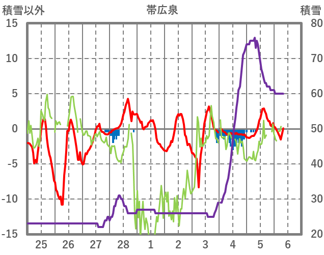 | 日 | 時 | 気温 | 降水 | 風向/風速 | 日照 | 積雪 | 降雪 |