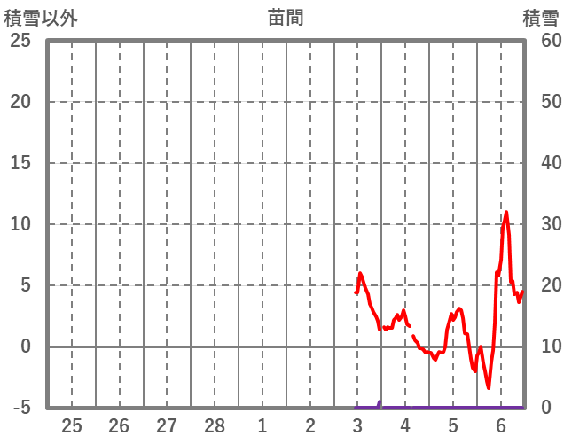 | 日 | 時 | 気温 | 降水 | 風向/風速 | 日照 | 積雪 | 降雪 |