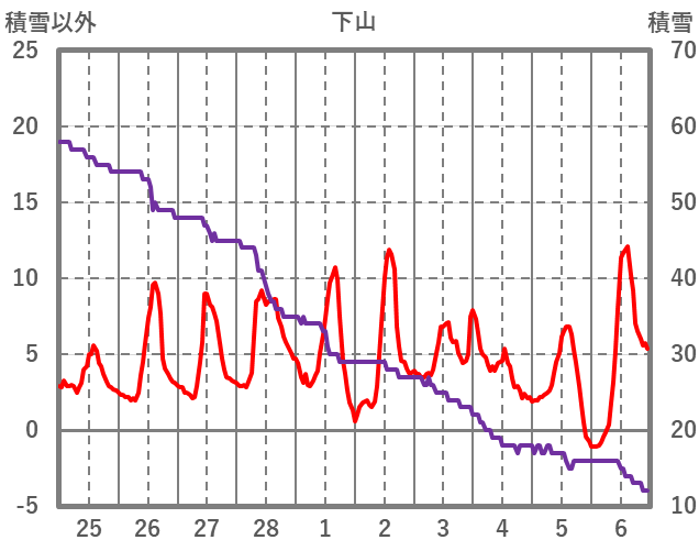 | 日 | 時 | 気温 | 降水 | 風向/風速 | 日照 | 積雪 | 降雪 |