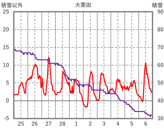 | 日 | 時 | 気温 | 降水 | 風向/風速 | 日照 | 積雪 | 降雪 |
