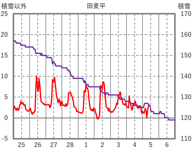 | 日 | 時 | 気温 | 降水 | 風向/風速 | 日照 | 積雪 | 降雪 |