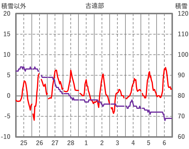 | 日 | 時 | 気温 | 降水 | 風向/風速 | 日照 | 積雪 | 降雪 |
