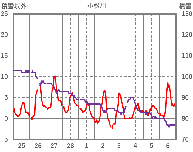 | 日 | 時 | 気温 | 降水 | 風向/風速 | 日照 | 積雪 | 降雪 |