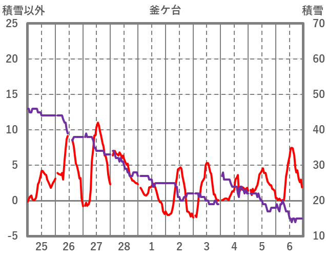 | 日 | 時 | 気温 | 降水 | 風向/風速 | 日照 | 積雪 | 降雪 |
