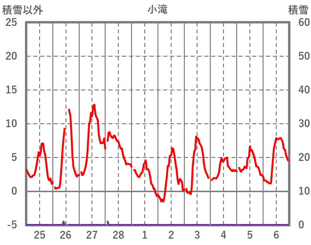 | 日 | 時 | 気温 | 降水 | 風向/風速 | 日照 | 積雪 | 降雪 |