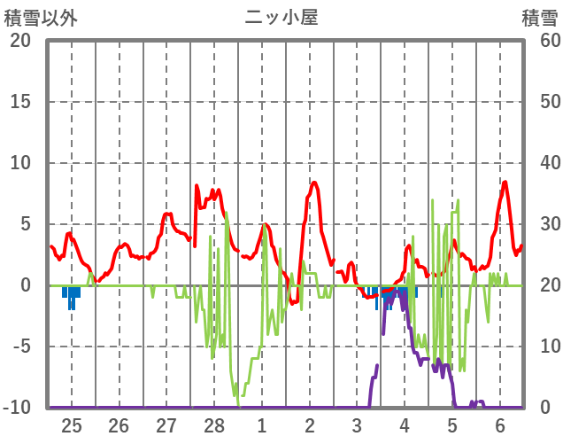 | 日 | 時 | 気温 | 降水 | 風向/風速 | 日照 | 積雪 | 降雪 |